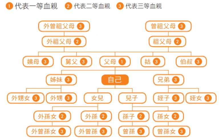 • 被看護人之直系血親,如祖父母、父母、子女、孫子女等